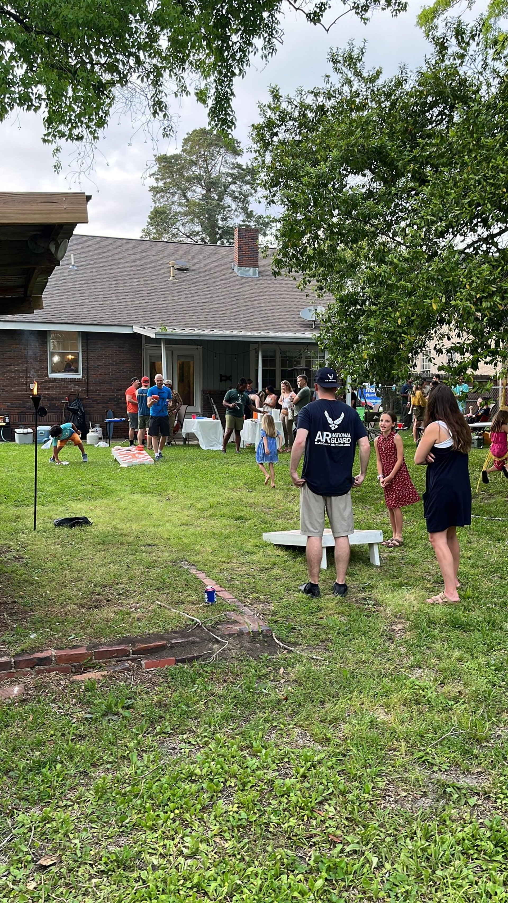 Some outdoor seating and some shade are great for relaxing and hanging out while the boil is happening, but then folks usually surround the table, wait for the boil to be dumped, then they just start peeling and eating.